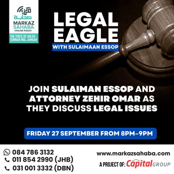 Br Sulaimaan Essop speaks to Attorney Zehir Omar and they discuss various topics and Attorney Zehir Omar informs us and answers questions posed by the public Understanding your rights made easy! Join Sulaiman Essop on Legal Eagles - Discussing Legal Issues with Experts every Fridays from 20:00 - 21:00 Listen…