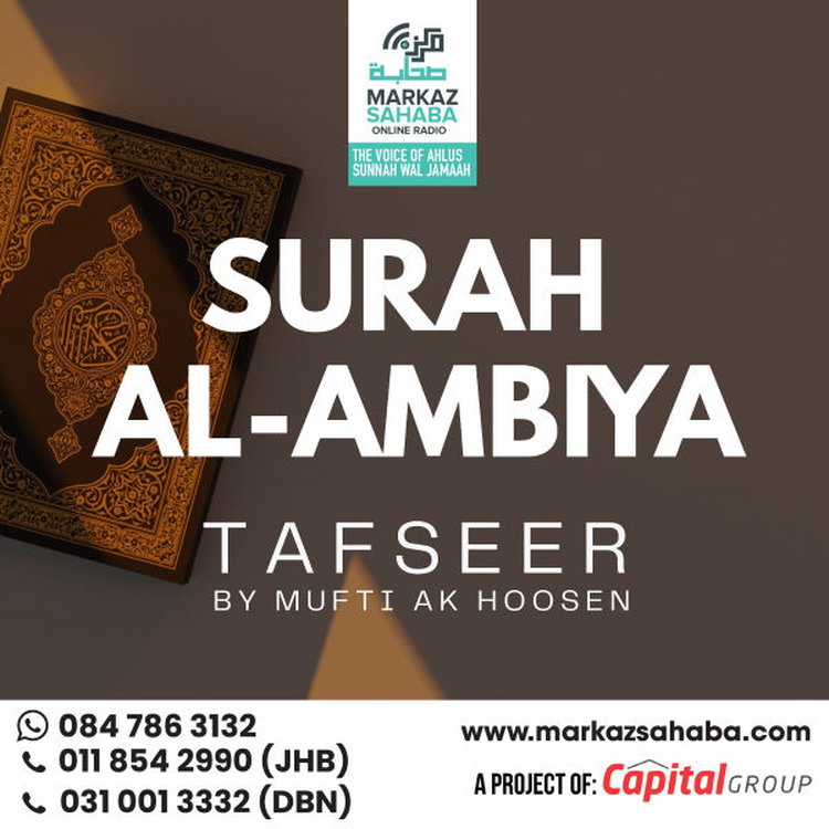 Tafseer of Sura Sura Al-Ambiya - Presented by Mufti A.K. Hoosen, a globally respected scholar known for his deep insight, authentic scholarship, and clear presentation, this Tafseer brings together classical explanations with practical guidance for the modern believer