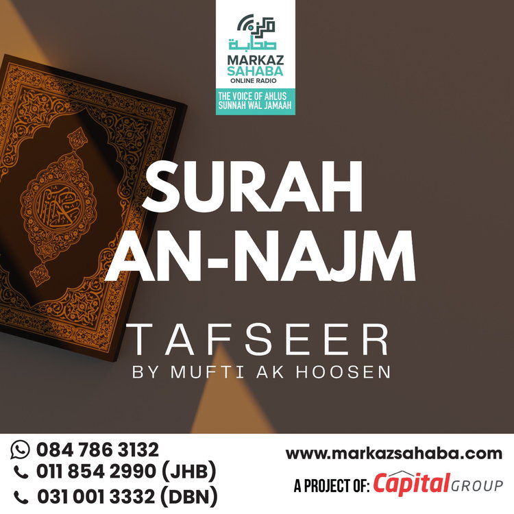 Tafseer Of Sura Najm- Presented by Mufti A.K. Hoosen, a globally respected scholar known for his deep insight, authentic scholarship, and clear presentation, this Tafseer brings together classical explanations with practical guidance for the modern believer