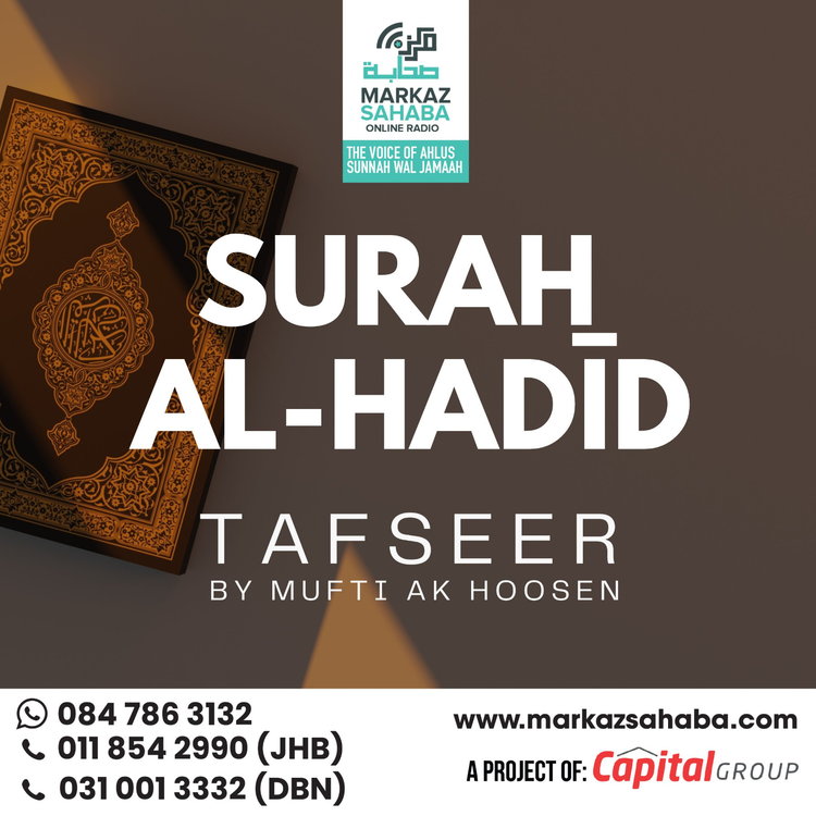Tafseer Of Sura Al Hadeed- Presented by Mufti A.K. Hoosen, a globally respected scholar known for his deep insight, authentic scholarship, and clear presentation, this Tafseer brings together classical explanations with practical guidance for the modern believer