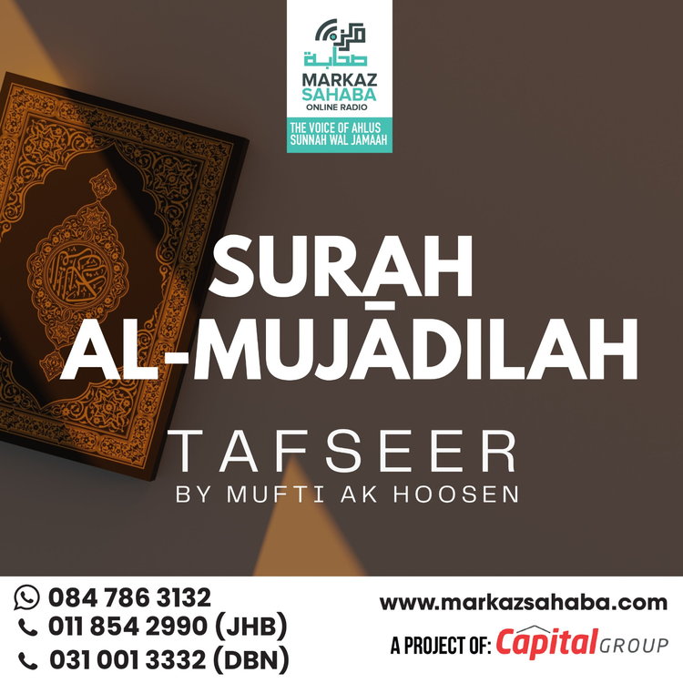 Tafseer Of Sura Mujadalah- Presented by Mufti A.K. Hoosen, a globally respected scholar known for his deep insight, authentic scholarship, and clear presentation, this Tafseer brings together classical explanations with practical guidance for the modern believer