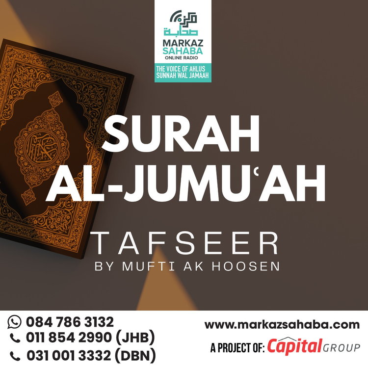 Tafseer Of Sura Jumu'ah - Presented by Mufti A.K. Hoosen, a globally respected scholar known for his deep insight, authentic scholarship, and clear presentation, this Tafseer brings together classical explanations with practical guidance for the modern believer