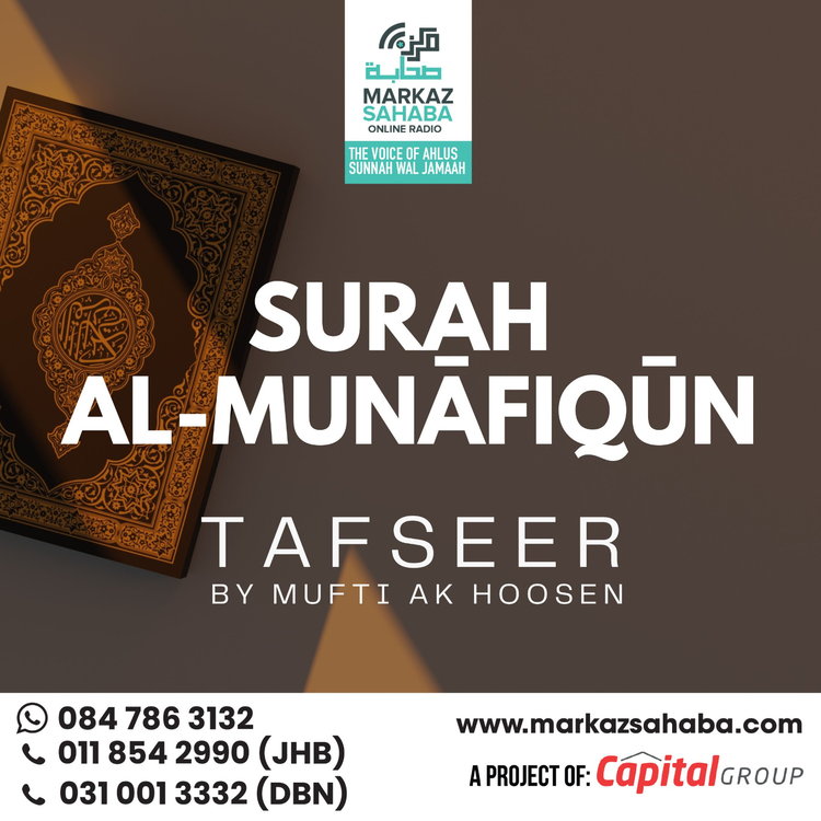 Tafseer Of Sura Al Munafiqun - Presented by Mufti A.K. Hoosen, a globally respected scholar known for his deep insight, authentic scholarship, and clear presentation, this Tafseer brings together classical explanations with practical guidance for the modern believer