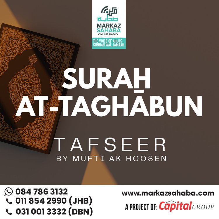 Tafseer Of Sura Taghabun - Presented by Mufti A.K. Hoosen, a globally respected scholar known for his deep insight, authentic scholarship, and clear presentation, this Tafseer brings together classical explanations with practical guidance for the modern believer