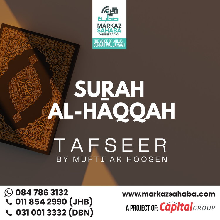 Tafseer Of Sura Al-Haaqqa Presented by Mufti A.K. Hoosen, a globally respected scholar known for his deep insight, authentic scholarship, and clear presentation, this Tafseer brings together classical explanations with practical guidance for the modern believer
