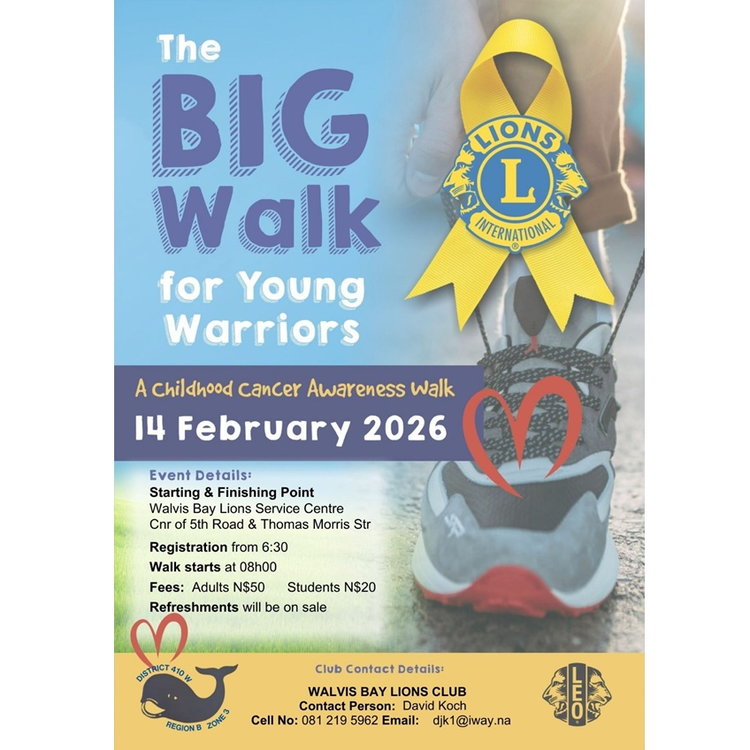 Join Nova 1035 this coming Valentines Day for the childhood cancer awareness walk starting at the Walvis Bay Lions Service Centre, corner of 5th Road and Thomas Morris Street.